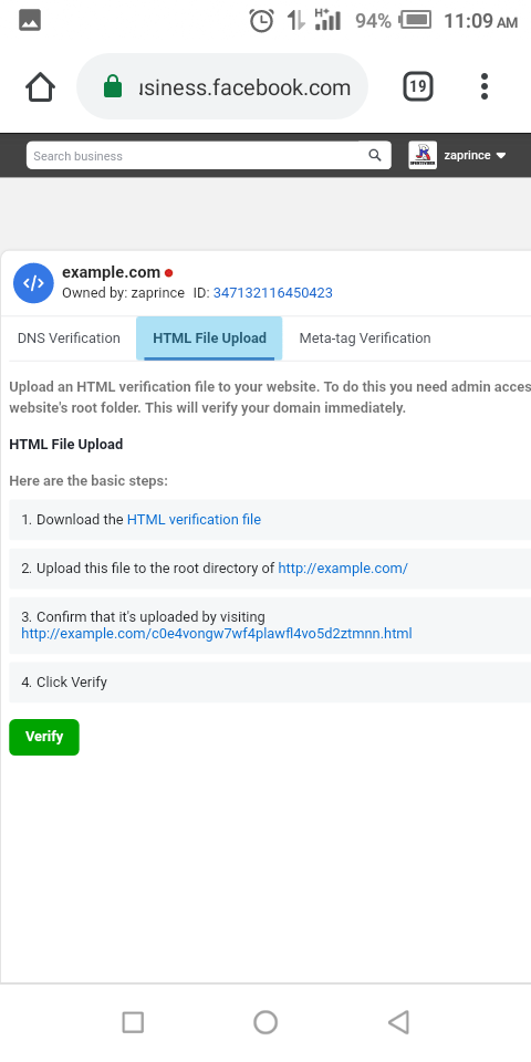 Not to waste no time, we'll move to verifying your Domain on Facebook. Is it just me or it seems somewhat easy. *wink*